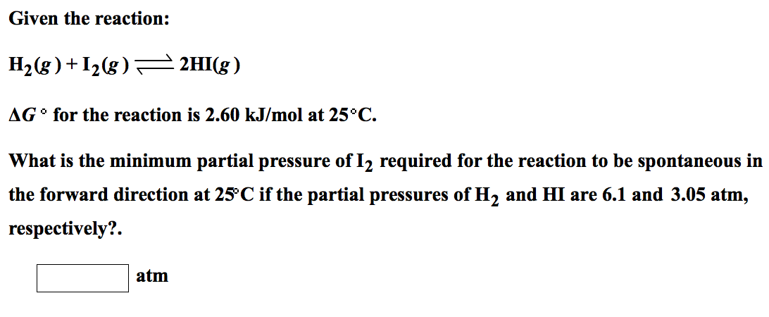 Solved Given The Reaction H2 G I2 G 2hi G Delta G Chegg Com