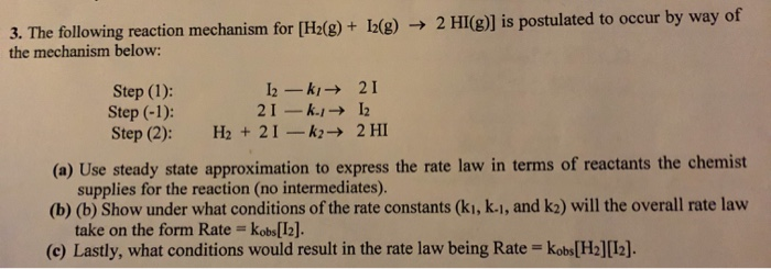 Solved 3 The Following Reaction Mechanism For H2 G Chegg Com
