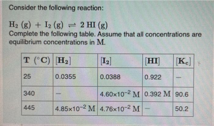 Solved Consider The Following Reaction H2 G I2 G 2 Chegg Com